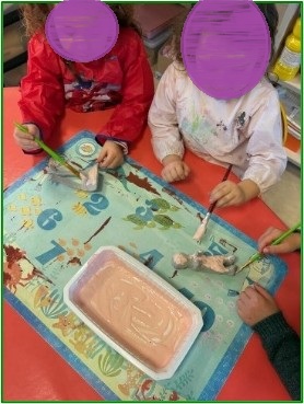 Peinture pour créer le décor de la maison et de l’intérieur du four.