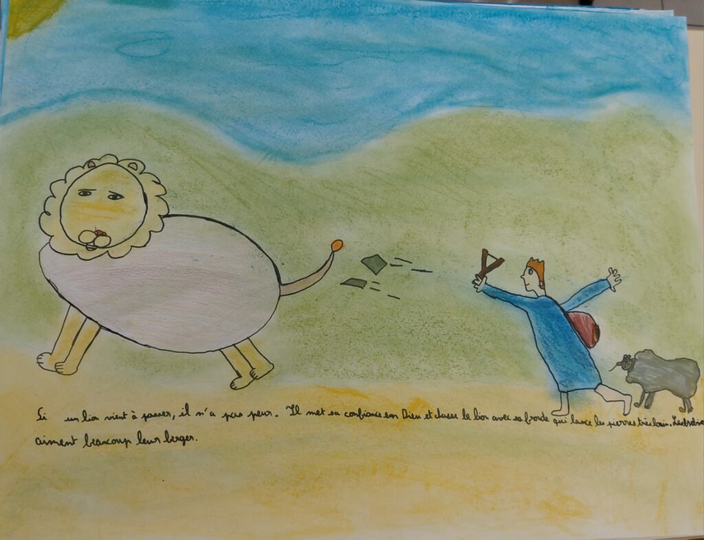 Les élèves de CP au CM2 ont participé à un atelier ludique de découverte de la Bible. Ces derniers ont exploré la Bible et appris à distinguer l’Ancien et le Nouveau Testament. Chaque groupe a été invité à localiser l’épisode étudié : L’arche deNoé pour les plus jeunes et David et Goliath pour les plus grands, avant de visionner une vidéo et d’échanger sur ce qu’ils ont compris.